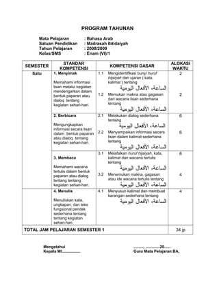MAHASISWA JURUSAN TARBIYAH PROGRAM STUDI PENDIDIKAN BAHASA ARAB PBA SEKOLAH TINGGI AGAMA ISLAM NEGERI. Program Tahunan Bahasa Arab Kelas 8 Kuriikulum 2013 ini di artikel ini dibedakan menjadi 2 yaitu semester 1 dan semester 2.